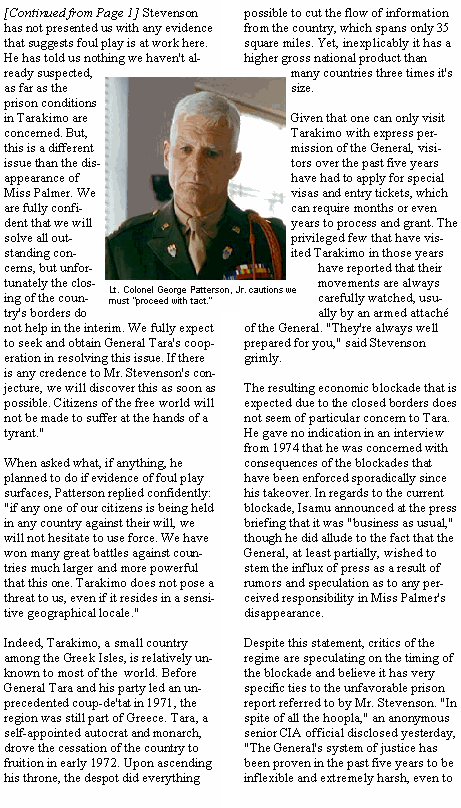 runs afoul of evil dictator General Tara, while attempting to expose his